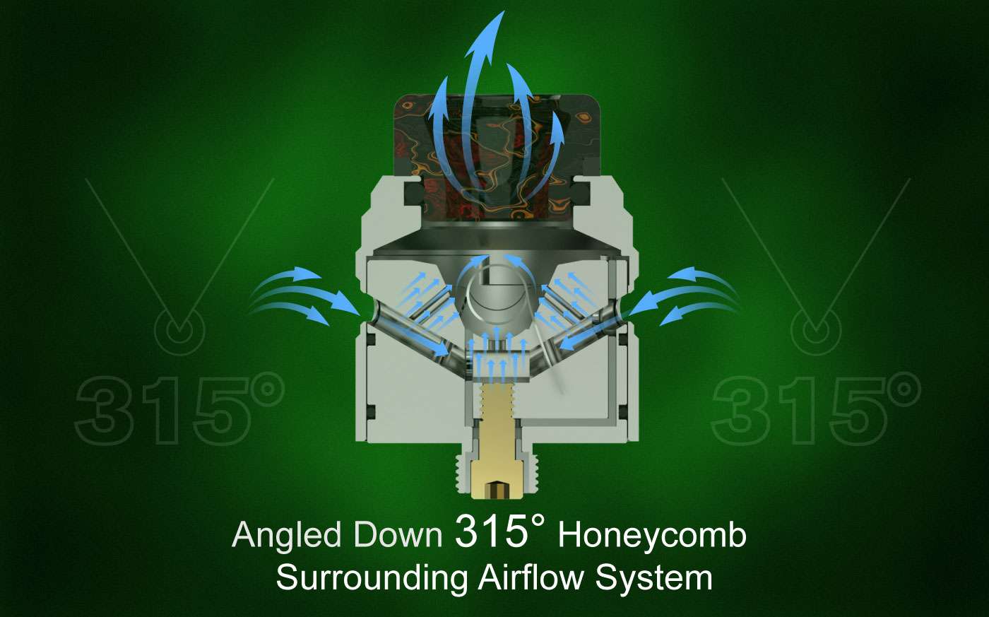 A regulação de ar é fácil de usar, o ar atravessa o RDA e bate diretamente na resistência.